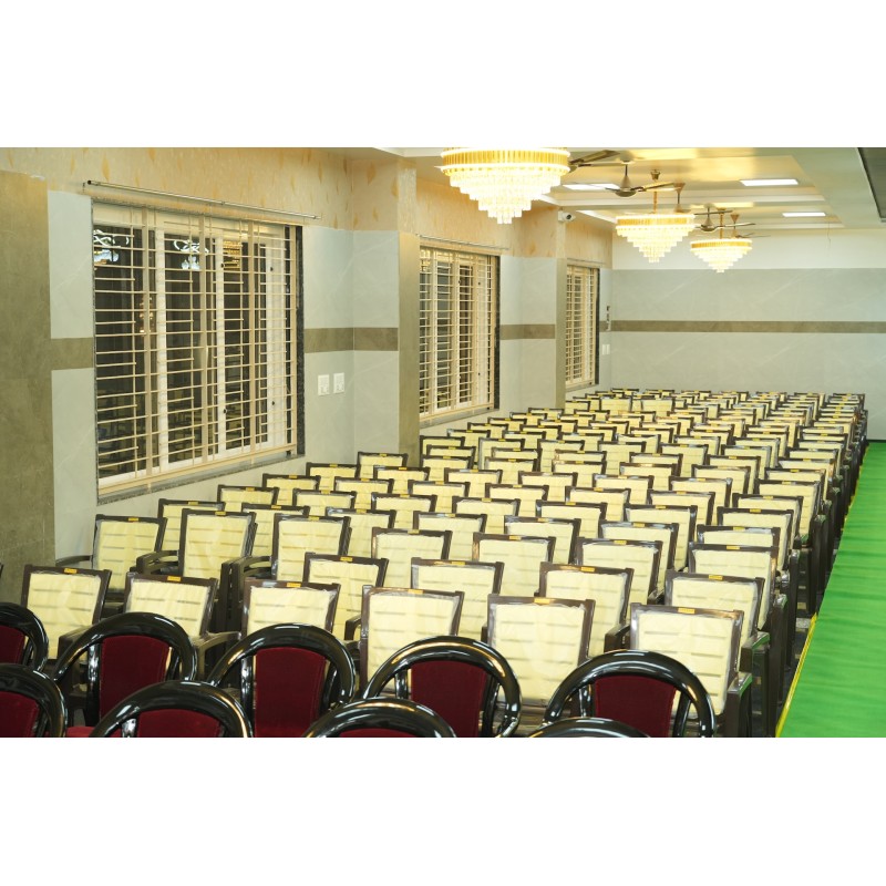 Our well-designed, air-conditioned function hall offers comfortable seating for up to 300 guests, complete with chairs and a couple chair. The venue includes 2 powder rooms, a spacious dining hall with seating for 200 guests (with dining tables and chairs), and RO drinking water facilities. Separate toilets are also available for the convenience of guests.